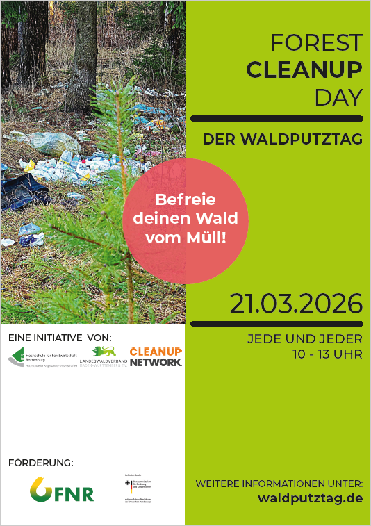Wir bieten einen personalisierbaren Flyer / ein Poster für Waldputzaktionen zum Download an. Diese können mit Logos und Texten personalisiert und dann abgespeichert und ausgedruckt oder verschickt werden: